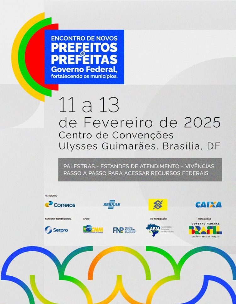 O Encontro de Novos Prefeitos e Prefeitas está marcado para os dias 11, 12 e 13 de fevereiro, no Centro de Convenções Ulysses Guimarães, em Brasília, e são esperadas mais de 20 mil pessoas.